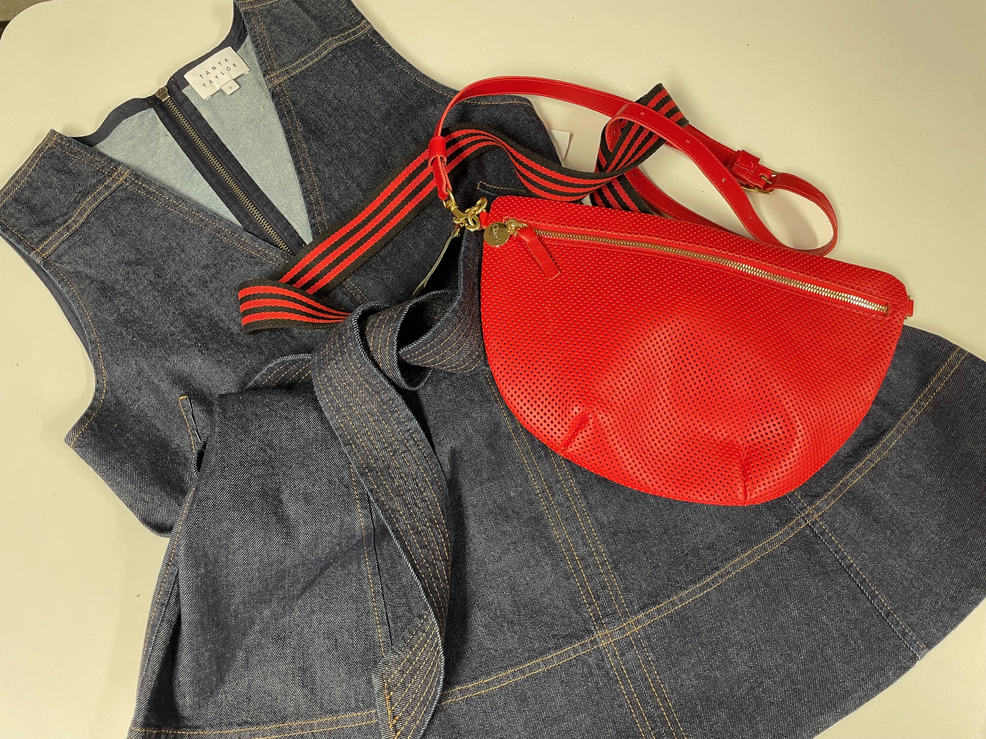 17 May 2025 Clare V is in! by KK Connor | posted in: New Arrivals | 0 This Clare V. messenger won’t las long! Red mesh purse is $168, shown with denim Tanya Taylor dress size 8 $110.